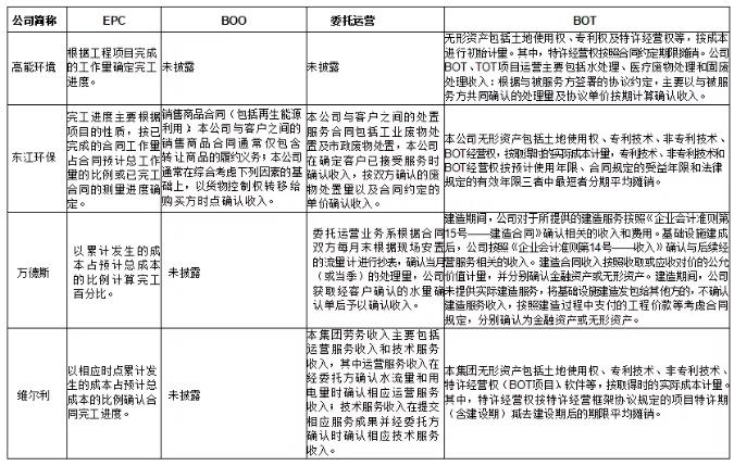 epc、boo、委托運營、bot模式主要會計政策具體如下: