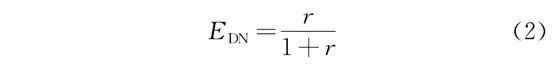 生物池內(nèi)回流比大小直接決定脫氮效率。在假設(shè)生物硝化及反硝化效率均為100%的前提下,脫氮效率隨著內(nèi)回流比的增大而增大,脫氮效率edn計算見式(2):