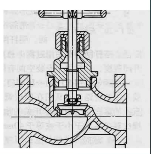4、 截止閥閥體的結(jié)構(gòu)形式有直通式、直流式和直角式。直通式是最常見的結(jié)構(gòu),但其流體的阻力最大。直流式流體阻力較小,多用于含固體顆粒或粘度大的流體。直角式閥體多采用鍛造,適用于較小通經(jīng)、較高壓力的的截止閥。