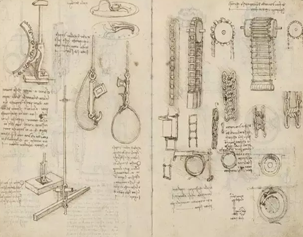 達(dá)芬奇作為歐洲文藝復(fù)興時(shí)期最完美的代表,一直以畫作最為人熟知,其實(shí)他老人家還兼職發(fā)明家與科學(xué)家,各類設(shè)計(jì)的手稿長達(dá)7000多頁,現(xiàn)存5000多頁,涵蓋的主題包括生物學(xué)手稿、工程設(shè)計(jì)手稿、機(jī)械學(xué)手稿等。達(dá)芬奇的設(shè)計(jì)手稿中大量的可以運(yùn)用于生產(chǎn)交通和軍事中,說了那么半天和機(jī)床有什么關(guān)系呢,讓我們繼續(xù)往下看。