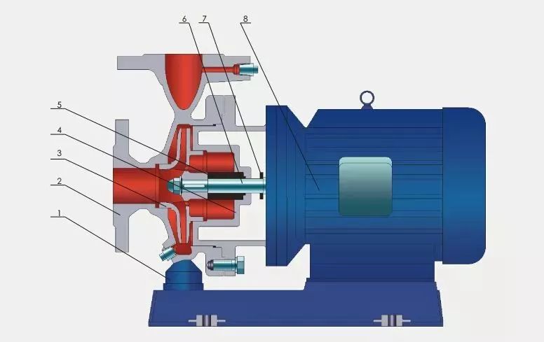 在泵啟動前,泵殼內灌滿被輸送的液體;啟動后,葉輪由軸帶動高速轉動,葉片間的液體也必須隨著轉動。在離心力的作用下,液體從葉輪中心被拋向外緣并獲得能量,以高速離開葉輪外緣進入蝸形泵殼。